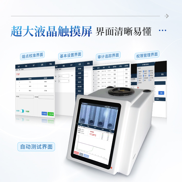 简要描述: 全自动熔点仪完美结合高精度控温技术和高清视频摄像技术,不但为用户提供准确、稳定、可靠的测试结果,还为用户带来高效便捷的测试感受。高清视频可方便清晰的看到样品熔化的全过程,自动检测实时图谱显示,方便用户准确测得样品熔点和熔距。